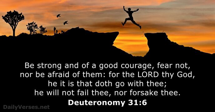 Have not I commanded thee? Be strong and of a good courage; be not afraid, neither be thou dismayed: for the Lord thy God is with thee whithersoever thou goest. – Joshua 1:8-9