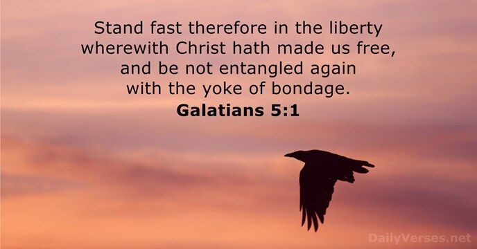 Stand fast therefore in the liberty wherewith Christ hath made us free, and be not entangled again with the yoke of bondage. Galatians 5:1